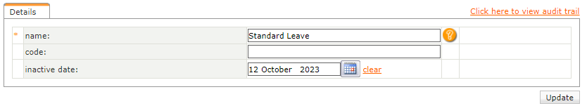 To deactivate an organisation unit, select to edit the affected organisation unit and insert an inactive date in the "inactive from date:" field. Navigate > Configuration > Human Resources > Organisation Structure > Organisation Hierarchy Units