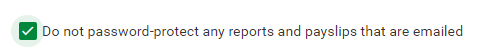 Enable the "Do not password-protect any reports and payslips that are emailed" checkbox on the Security Settings screen.