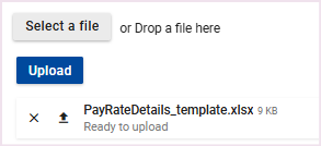 Step 4: Upload the completed MS Excel template by selecting Select a file and then clicking Upload.