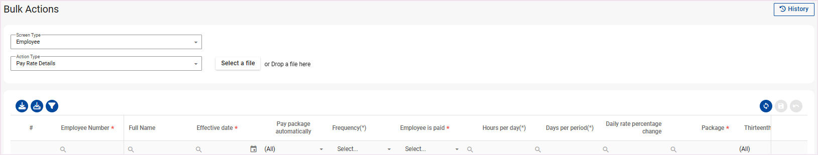 Step 2: Select the eye icon and download the pre-populated Pay Rate Details template.