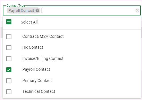To ensure that selected business partner or company level users receive PaySpace communication emails (e.g. Newsletters), select "Payroll Contact" from the dropdown list in the Contact Type field on the User Profiles screen.