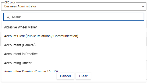 The version of the OFO codes that apply when creating positions on company level will therefore be specified by the SETA captured on the SDL, UIF, Other tab on the Basic Company Information screen.