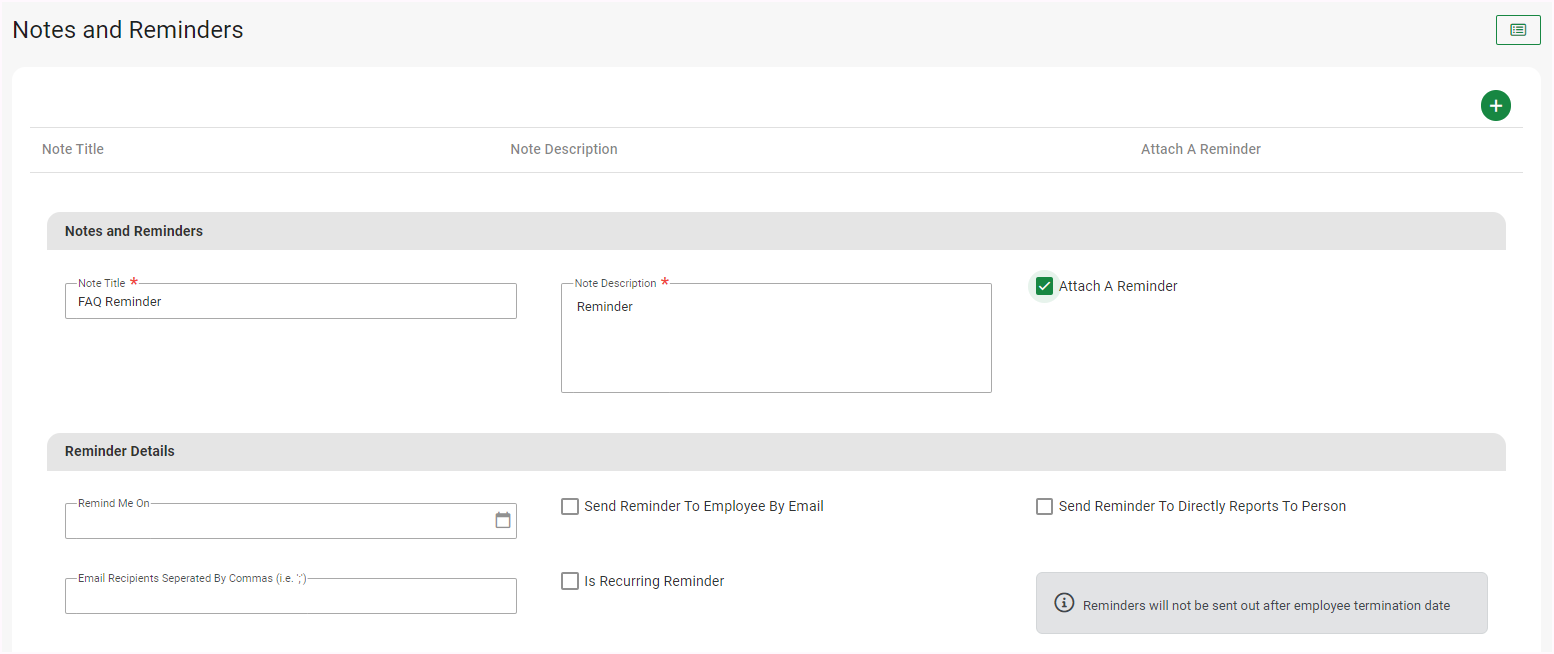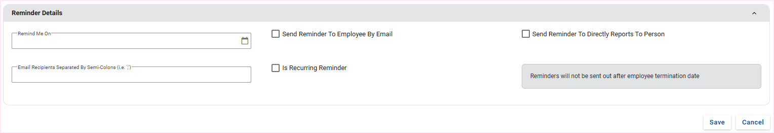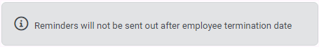 A message has been added to the screen to ensure the user is aware of the above: "Reminders will not be sent out after the employee's termination date".