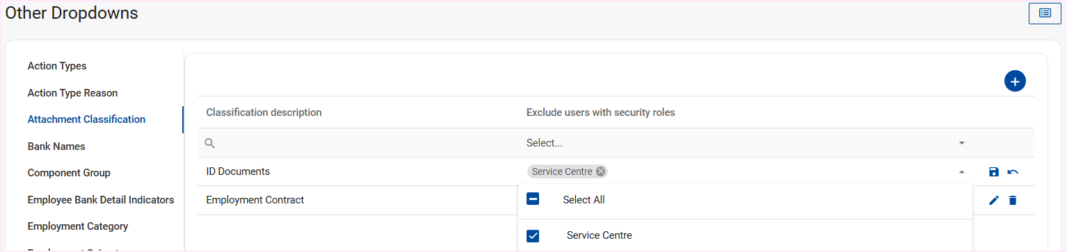 To exclude users from viewing a specific attachment or document that was uploaded, select the Security Role whose users should not be able to view the attachment classification and save your changes.