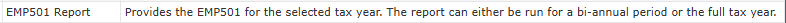 A company's EMP501 report can be allocated and downloaded under the Legislative report category on the Classic Reports screen.