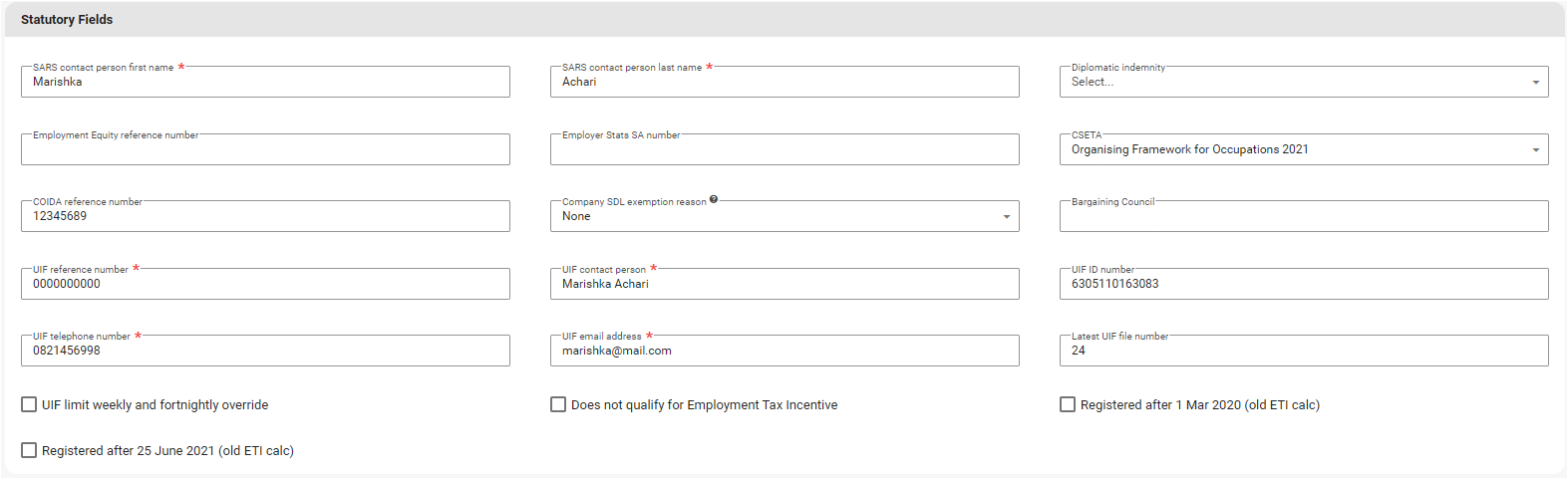 The Department of Labour will then send an email of receipt to the email address captured on the Statutory Fields tab.