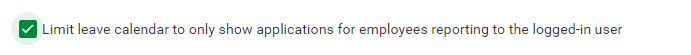 To hide the Employee Search and Company Structure fields on the employee Leave Calendar screen, enable the "Limit leave calendar to only show applications for employees reporting to the logged-in user" checkbox under the Leave Calendar section on the Leave Settings screen.