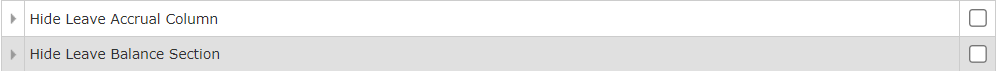 To hide the leave balance section and leave accrual column on the PDF Payslip, enable the following options on the Hide/Show Payslip Items screen.