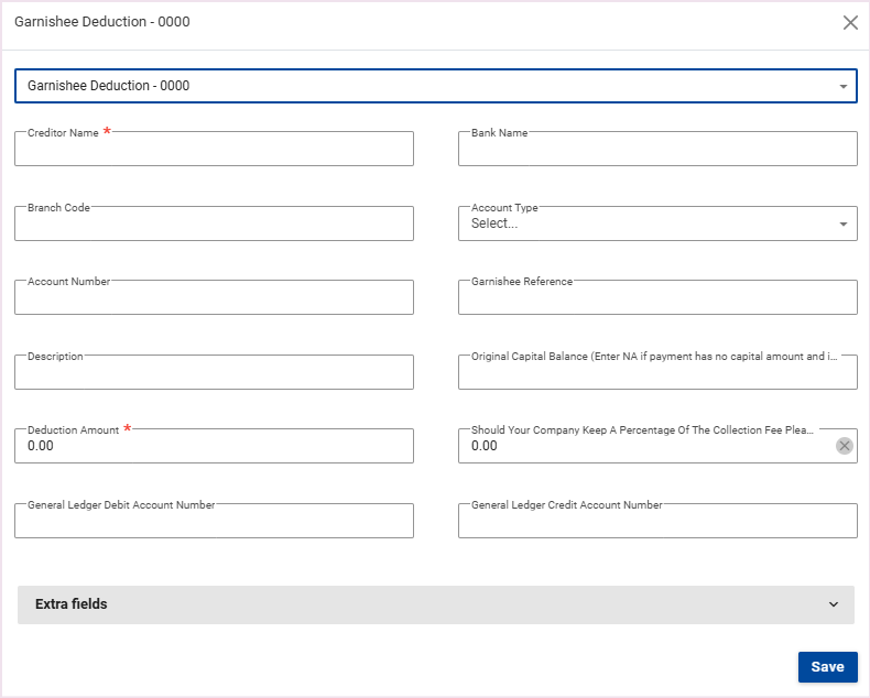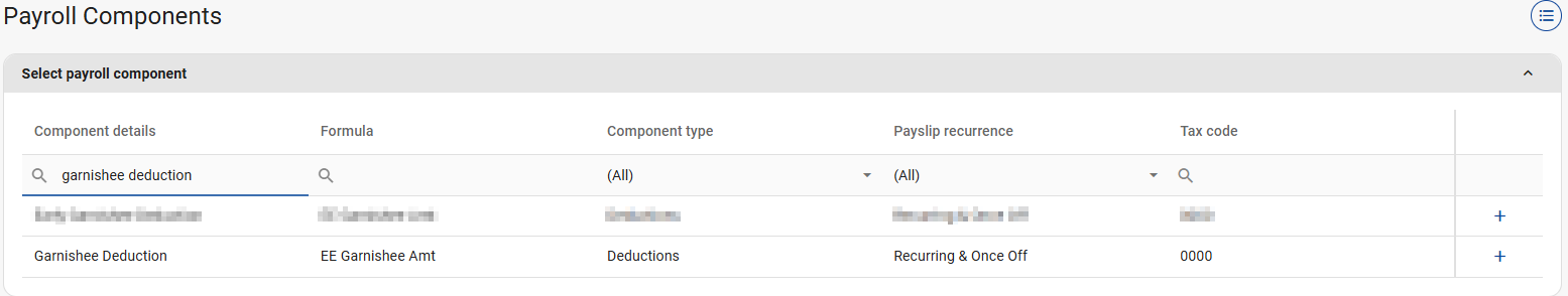 The Garnishee Deduction component has to be created on the company level before it can be set up on an employee's Recurring Payroll Components screen.