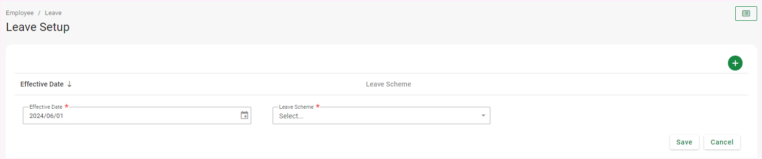 An employee can be linked to a leave scheme on the Leave Setup screen.