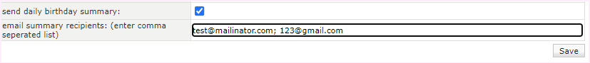 Select the "send daily birthday summary" checkbox to add a second email address, the email addresses may be separated with a semi-colon.