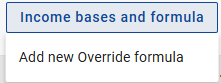 Step 2: Click on "income base and formula" and select the "Add new override formula" option.