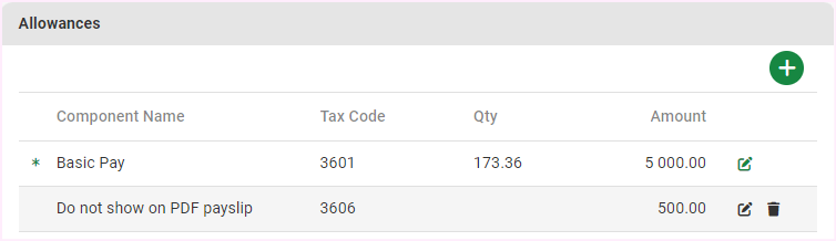 The Edit Payslip screen -