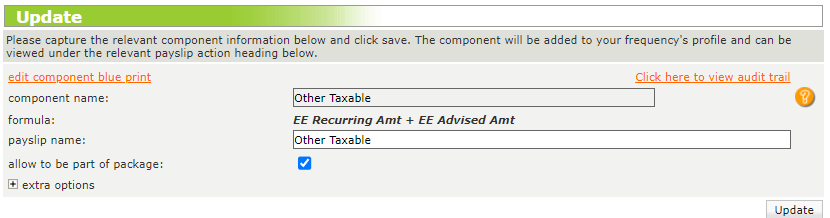 To process a component as part of package on the Mock Payslip screen, enable the "Allow to be part of package:" checkbox when configuring the component on company level.