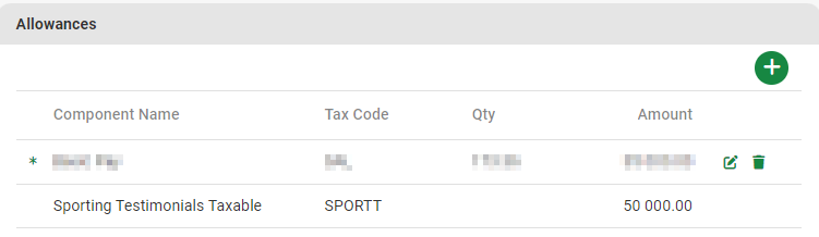 The system will then trigger an automatic Sporting Testimonials Allowance component.