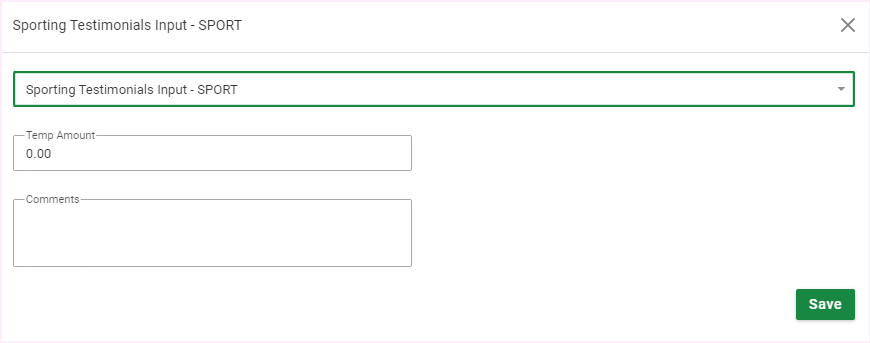 Select to add the Sporting Testimonials Input note component under the Notes section of the Edit Payslip screen.