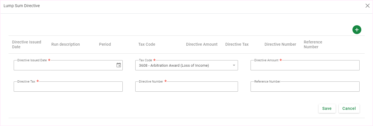 This feature is available on all PaySpace editions No. Lump sum directives cannot be processed on an employee's Take on Year To Date Figures screen. A Lump sum directive needs to be processed on the Edit Payslip screen. Navigate > Employee > Payroll ...