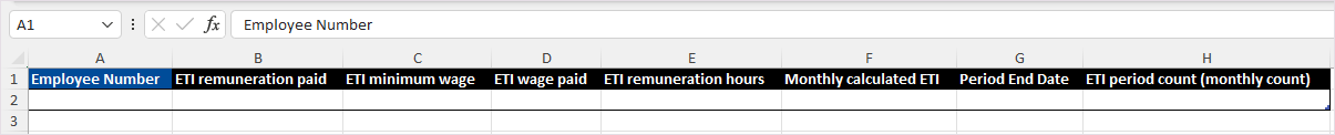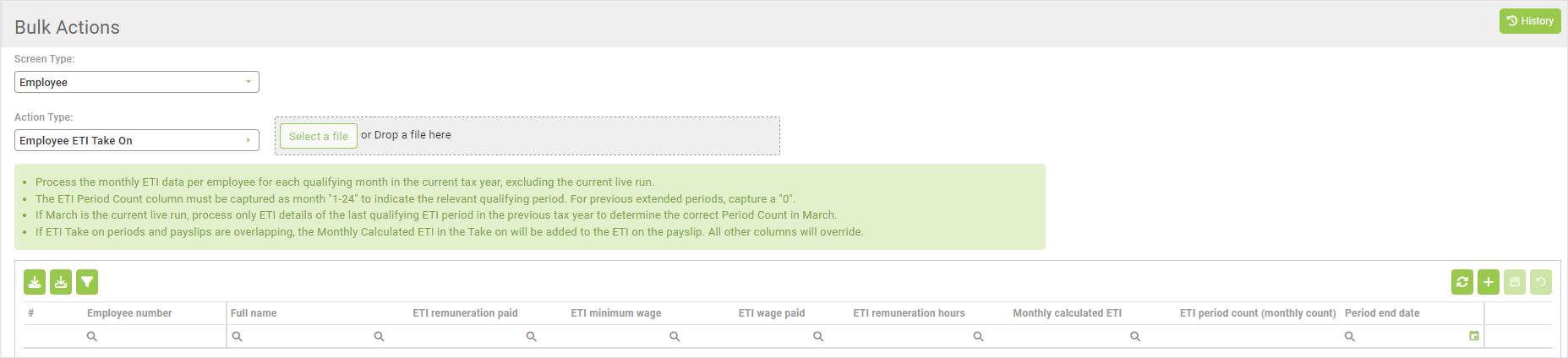 Select the Screen Type as Employee and the Action Type as Employee ETI Take On and download an empty template.
