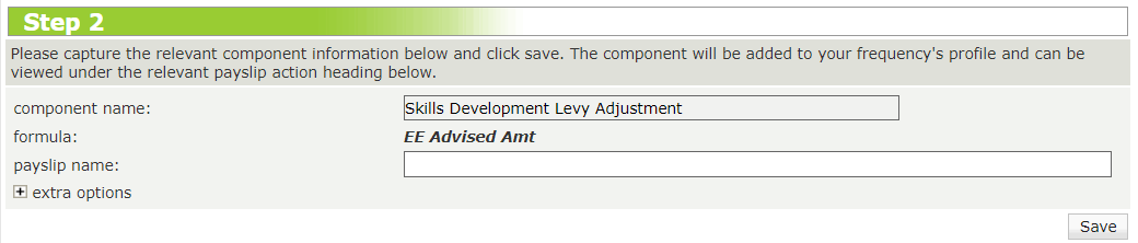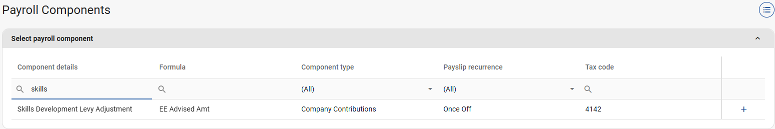 Step 1: Search for and create the Skills Development Levy Adjustment component on company level.