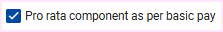 To prorate a component as per the Basic Pay, activate the "pro rata component as per basic pay" checkbox under "extra options" section of the component.