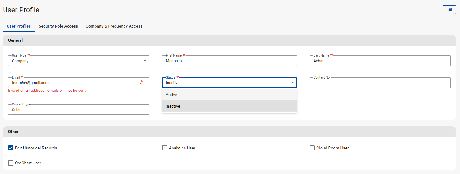 Alternatively, inactive profiles can be reactivated on the Activate Users screen.