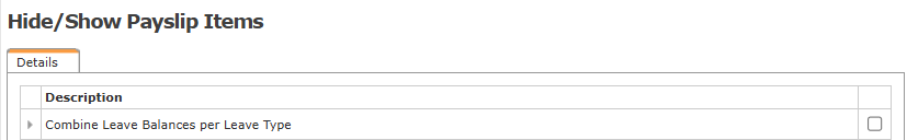 This feature is available on all PaySpace editions To hide the leave balance section and leave accrual column on the PDF Payslip, enable the following options on the Hide/Show Payslip Items screen. Navigate > Config > Payroll > Payslip > Hide/Show ...
