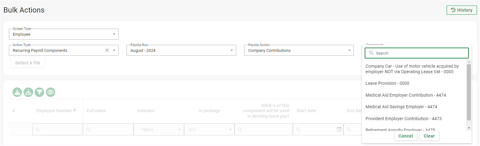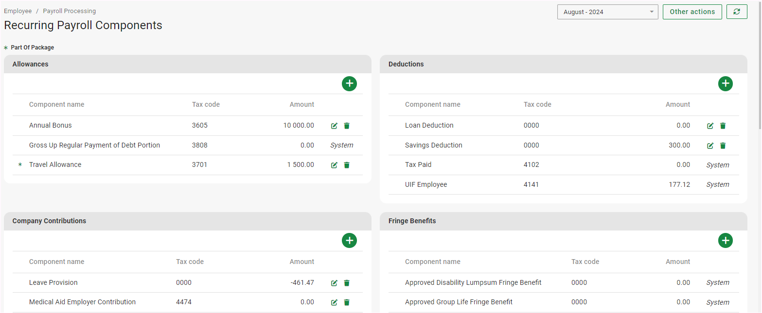 Recurring components can be removed from the Payslip, by deleting the components on the Employee's Recurring Payroll Components screen or collectively on Bulk Actions.