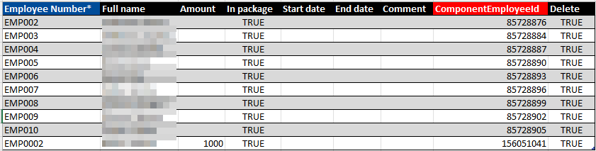 Option 2: The Bulk Action screen, select the applicable Component and downloaded a prepopulated spreadsheet. In the column 'Delete', change the option to 'True'