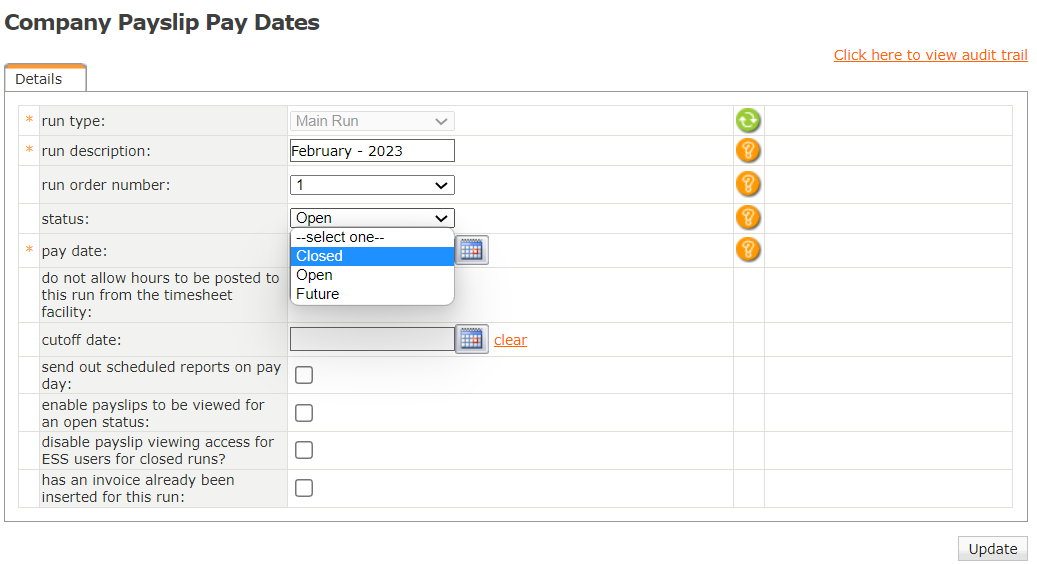 This feature is available on all Deel Local Payroll powered by payspace payroll editions Closed runs can be opened on the Run Management screen. Navigate > Payroll Cycle > Run Management > Closed Runs Step 1: Change the status to Open. Step 2: Click ...