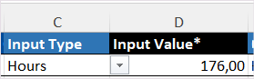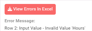 The error value "Input Value - Invalid Value 'Hours'" will display if the incorrect option in the "Input Type" column was select or inserted (for example, a Medical Aid component's input type cannot be hours).
