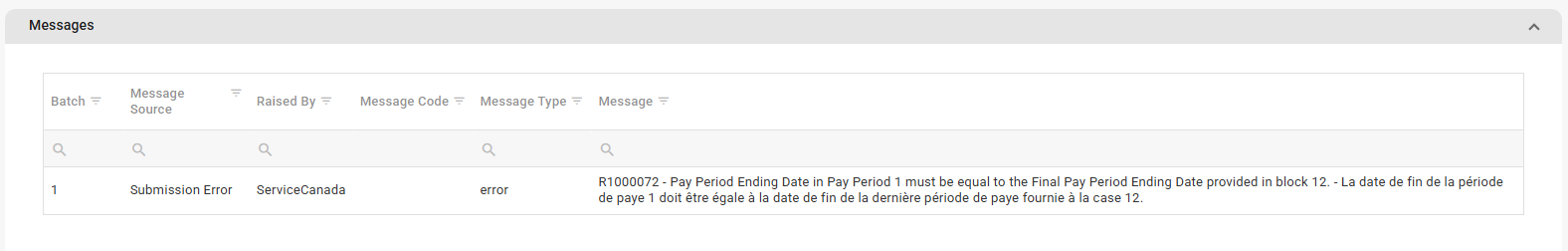 Canada | How do I resolve the ROE error: "Pay Period Ending Date must be equal to the Final Pay Period Ending Date"