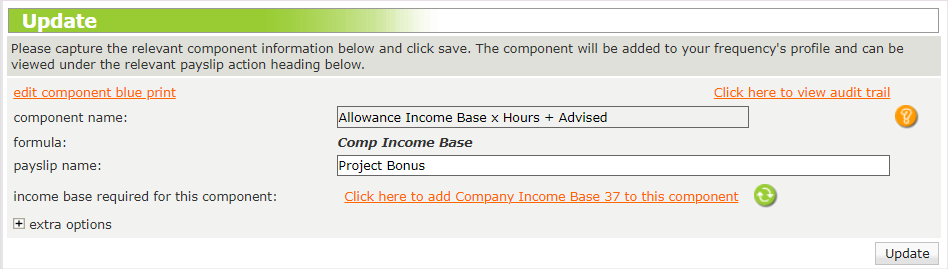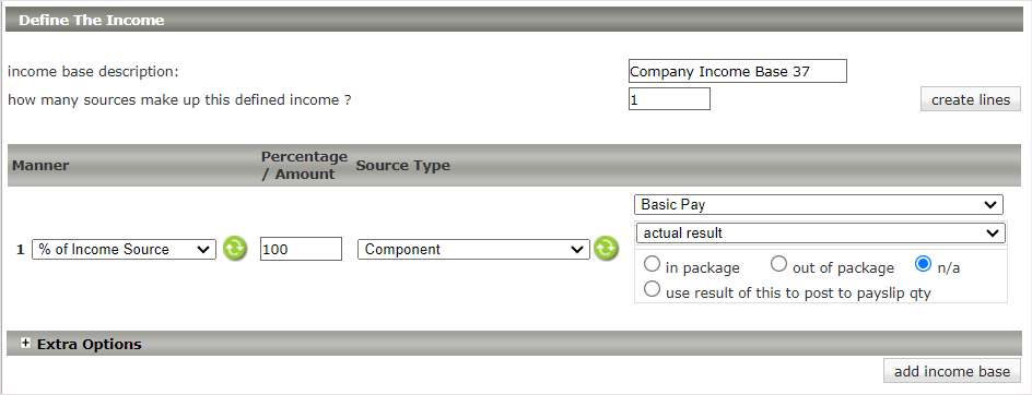 Step 1: Edit the affected component and select "Click here to add Company Income Base to this component" link.