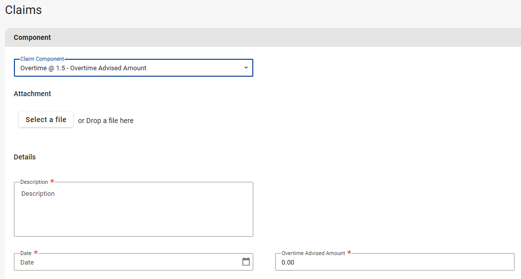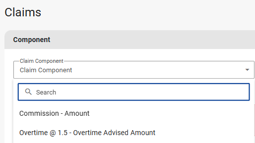 Step 5: An employee will be able to submit a claim (in this instance for Overtime @ 1.5) via their Claims screen on ESS.