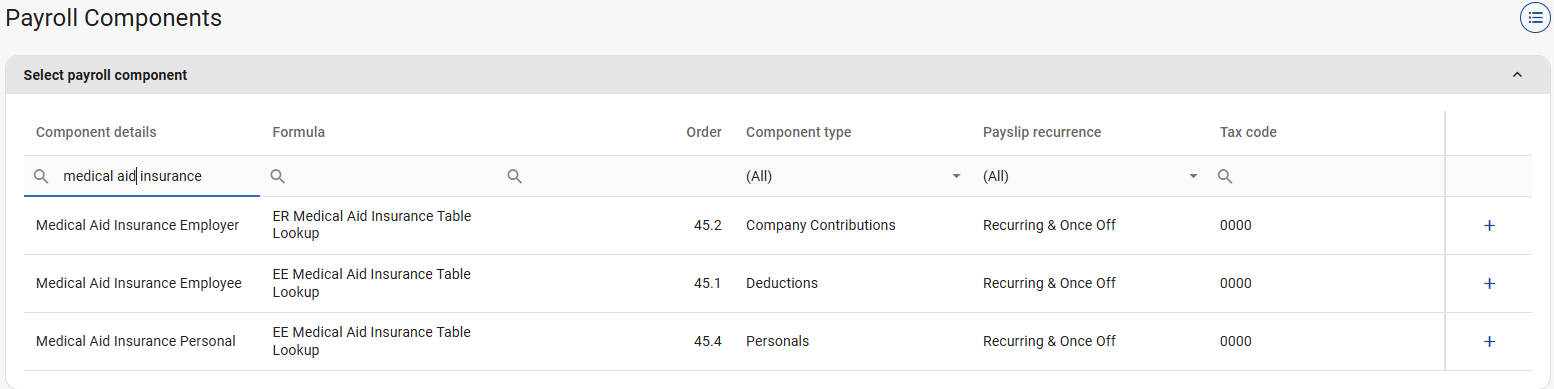 Step 2: Set up the Medical Aid Insurance component/s.