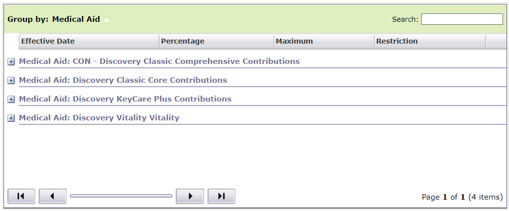 A list of created Medical Aid schemes will be reflected on the history grid at the bottom of the screen.
