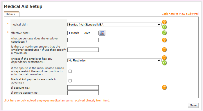 This feature is available on all Deel Local Payroll powered by payspace payroll editions A variety of Medical Aid Schemes are available to choose from on the Medical Aid Setup screen. Select and configure the relevant scheme according to the ...