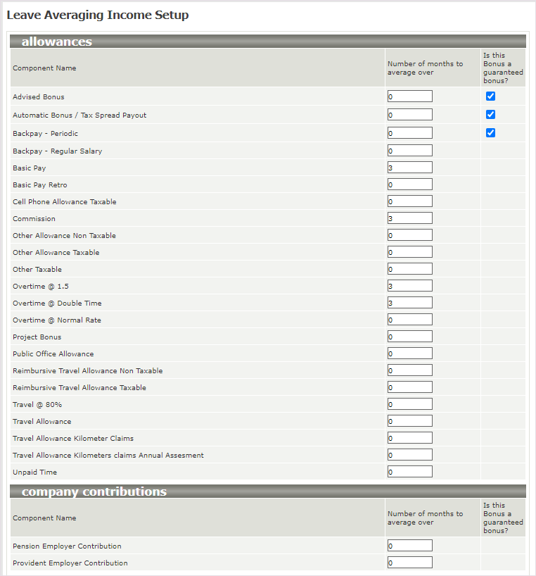 Select the components to calculate the BCEA Remuneration on the Leave Averaging Income Setup screen and specify the number of months over which to average the components and save your changes.