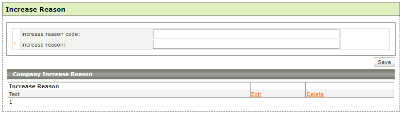 Navigate > Configuration > Basic Settings > Drop Down Management > Other Drop Downs > Increase Reason