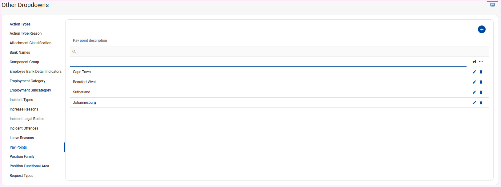 Pay Points can be created on company level under the Pay Points section on the Other Dropdowns screen, as part of the Advanced Organisation structure.