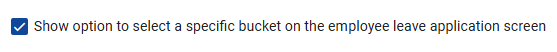 Enable the "Show option to select a specific bucket on the employee leave application screen" checkbox, under the Employee self service section on the Leave Settings screen, to allow employees to choose a leave type when submitting a leave application.