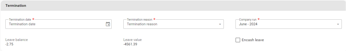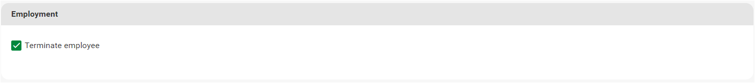 Once the "Terminate employee" checkbox is selected, a new section: Termination will appear with the necessary fields to complete the process.