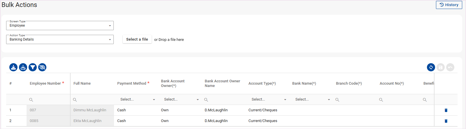 A blank Banking Details Template cannot be used to update existing employee bank details, as the system interprets this action as adding new Banking Details.