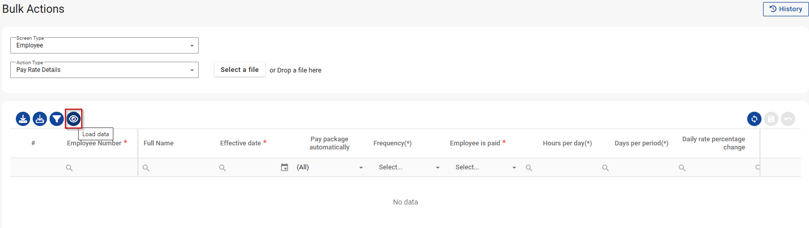 Navigate > Bulk Actions > Screen Type: Employee > Action Type: Pay Rate Details