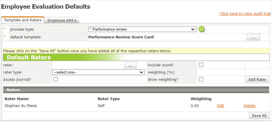 Step 3: Once the new Template is set up, it can be added to the employees' Setup screen.
