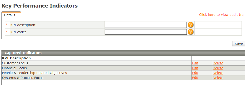 Step 2: Link the KPI's to the Template sections under the relevant Performance Template title.