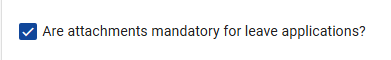 “after how many days” (Users can enter a numerical value in the textbox to specify the number of leave days required for an attachment to become mandatory, if applicable.)