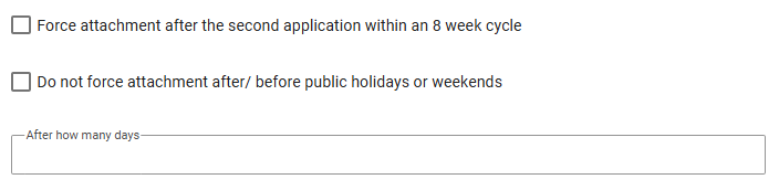 - “do not force attachment after/before public holidays or weekends?” (users will be able to specify whether an attachment should be mandatory or not if the leave was taken before or after a public holiday or weekend).