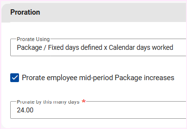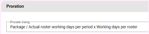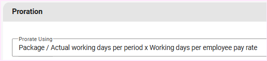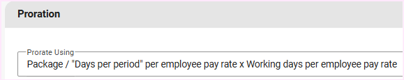 Applying this proration calculation method will not prorate an employee’s package but will show the working days on the Pay Rate Details screen necessary for calculating leave days.