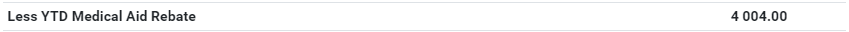 An employee's Year to Date Medical Aid Rebate will display on the Tax Breakdown screen as follows.