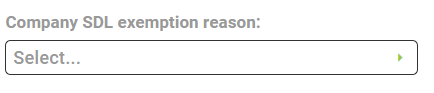 Employee level: Enabling the SDL exemption reason on company level will apply it on newly onboarded employee's. An existing employee's SDL exemption reason will not be inherited from the company setting above, it has to be configured on the Exemptions and Other section of their Basic Profile screen.